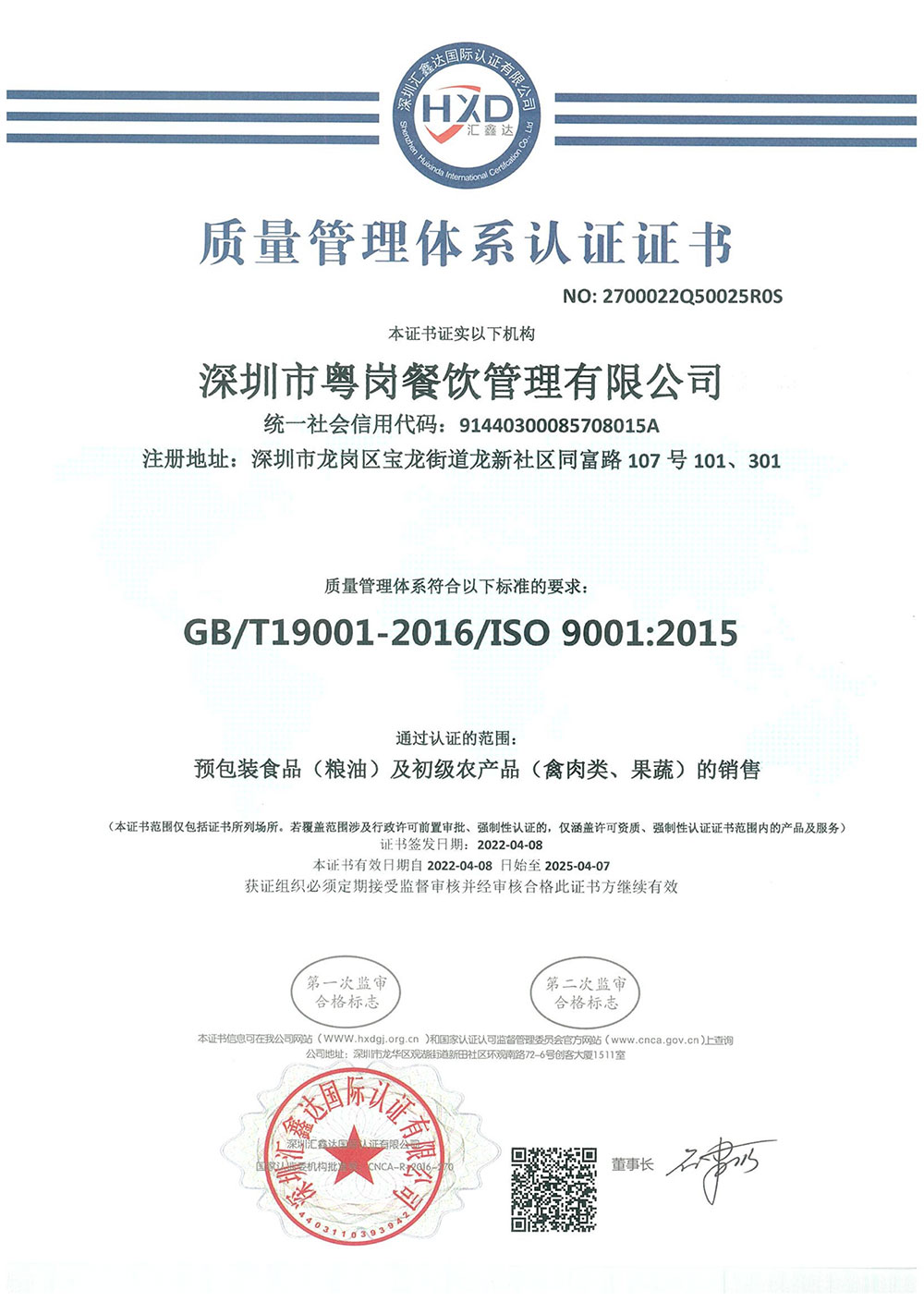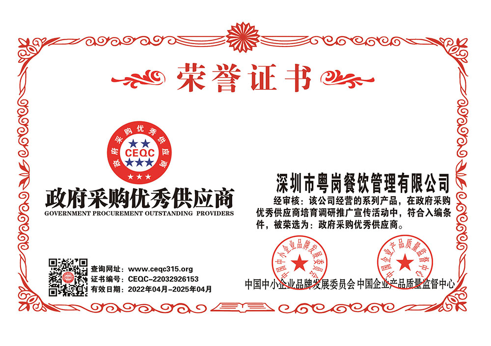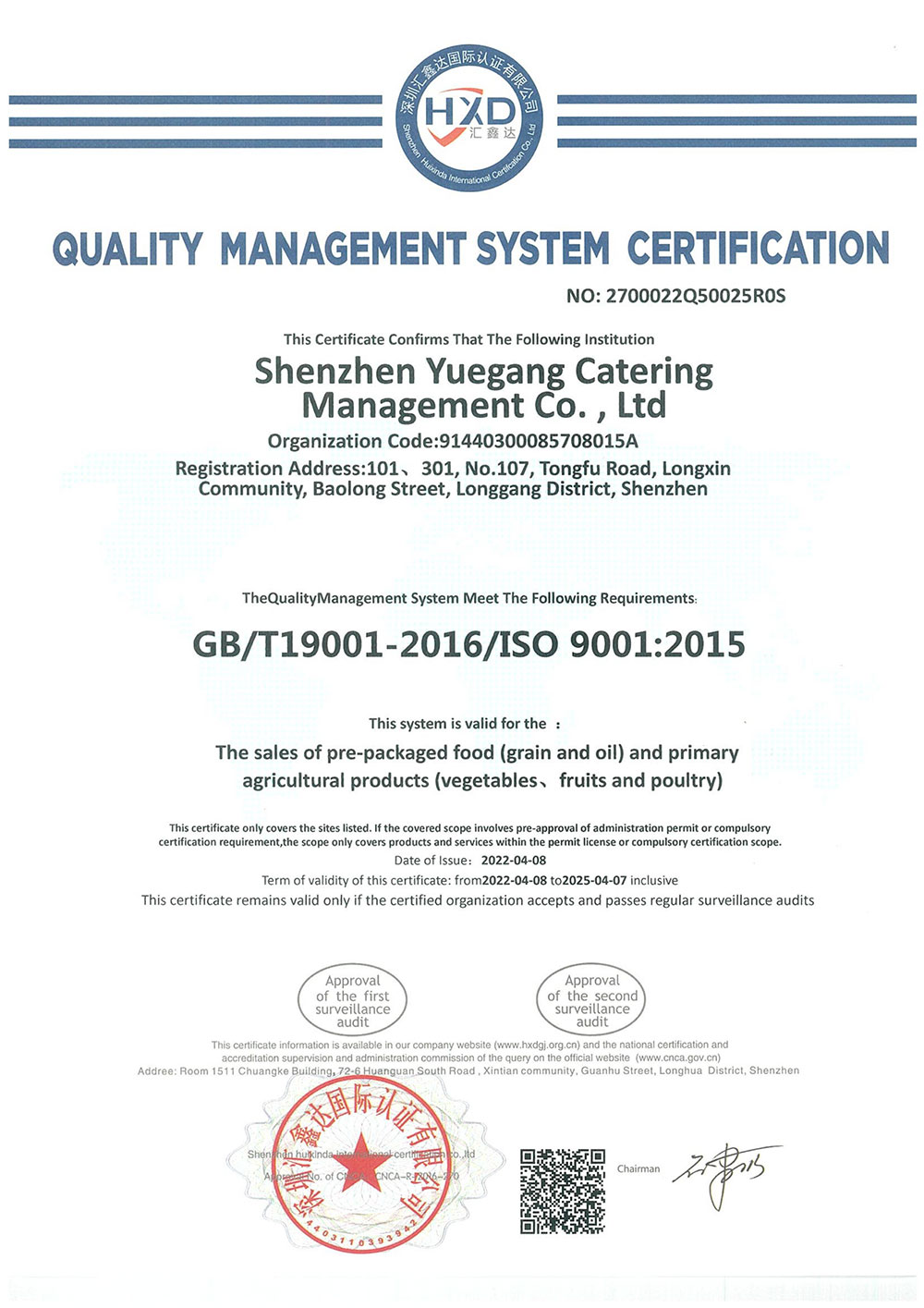 深圳市粵崗餐飲管理有限公司,是一家集蔬菜種植和農副產品配送為一體的專業型餐飲公司,主要為學校、工廠企事業機關單位提供蔬菜和農副產品配送服務。公司自成立以來始終以質優價廉、服務至上為原則,嚴格按照ISO:9001國際標準體系進行管理。同時建立了行業領先的配送中心、大型冷庫和保鮮庫、檢測中心以及專業化的配送團隊,能長期安全、穩定、準時的配送貨物。我們所有蔬菜均經過初步加工、無黃葉,無泥沙等雜質,利用率達97%以上...保障向用戶提供的各類食材的衛生和質量。公司為了適應不同客戶的需求,配有專業人員和配送車輛,實行“一對一”的服務體制,一心一意的為客戶服務,秉承粵崗誠實守信、服務第一、客戶至上的服務標準,真正讓客戶花最少的錢吃最好的菜。粵崗多年來何以欣欣向榮,因為我們知道只有勇于擔當責任,才能承擔更大的責任,就是因為 粵崗員工貫徹公司態度決定一切、細節決定成敗的真理,從質量抓起,從服務做起,才創造了如今的規?;?、統一性配送、專業化服務的粵崗。